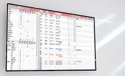 満室御礼の予約情報と連動し、お客様毎の夕食・朝食等の情報を調理場の大型モニタにリアルタイムに